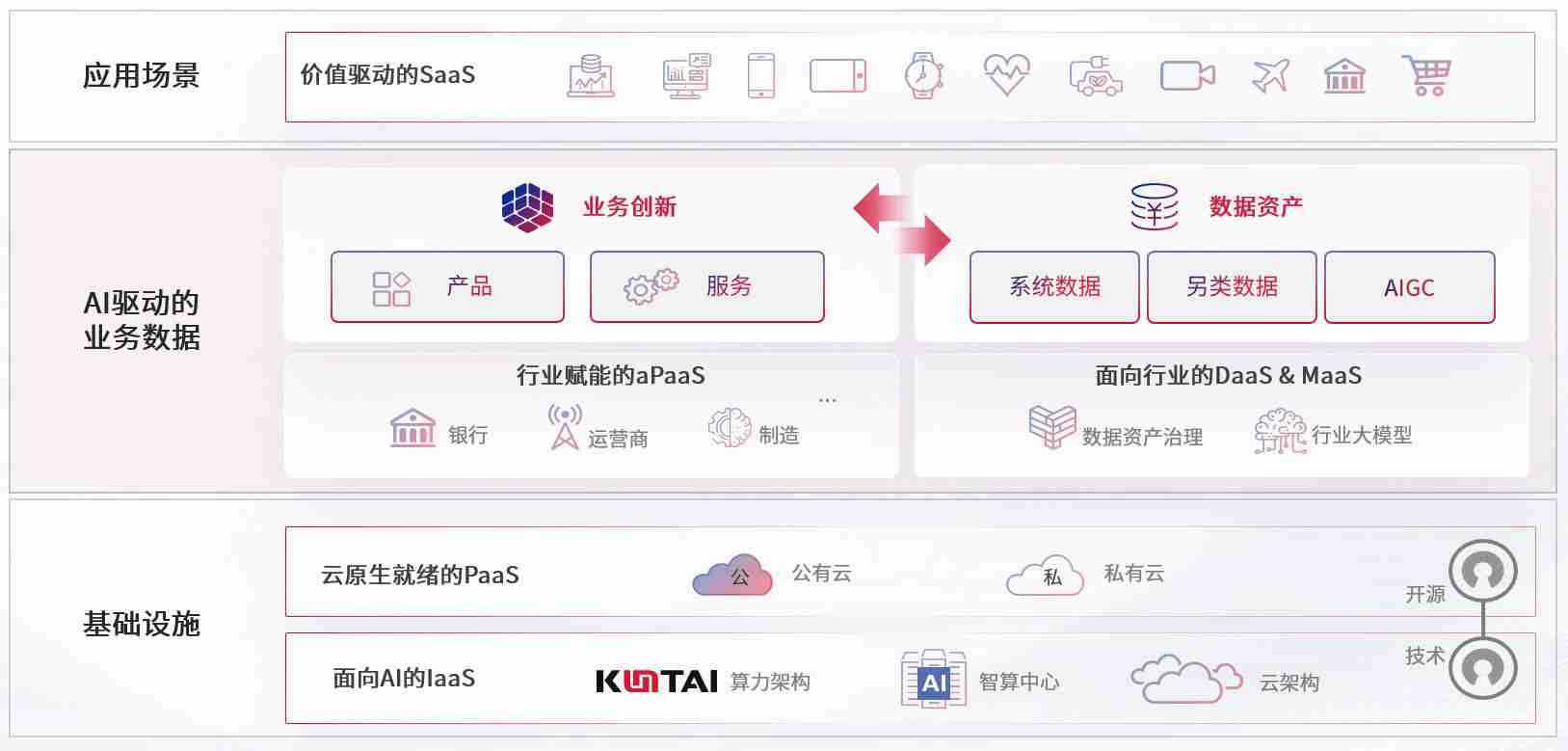 数字时代,,,,围绕企业数字化转型的关键要素,,,,狗子28数码开创性的提出数云融合战略和技术体系框架,,着力在云原生、、数字原生、、、AI原生和信创产业上架构产品和服务能力,,为处在不同数字化转型阶段的快消零售、、、汽车、、、金融、、医疗、、、、政企、、、教育、、、运营商等行业客户提供泛在的敏捷IT能力和融合的数据驱动能力,,,,构建跨界融合创新的数字业务场景和新业务模式,,助力企业级客户建立面向未来的核心能力和竞争优势,,全面推动社会的数字化、、、、智能化转型升级。。。。